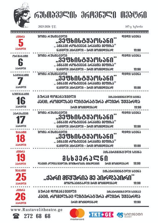 იქირავეთ რუსთაველის თეატრში ბენუარის ან ბელეტაჟის ლოჟა და ისარგებლეთ შემდეგი პრივილეგიებით